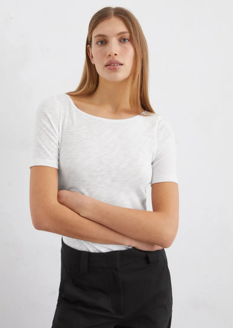 Slub-Jersey-T-Shirt regular mit U-Boot-Ausschnitt in weiss