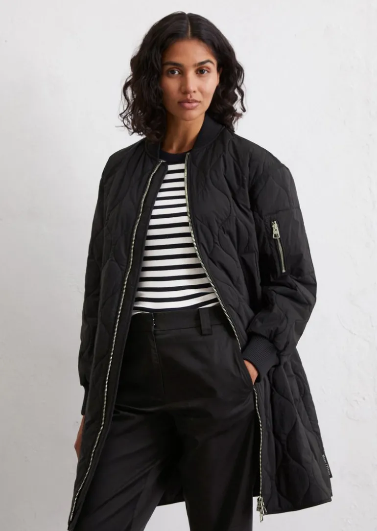 Steppmantel regular aus recyceltem Nylon in schwarz