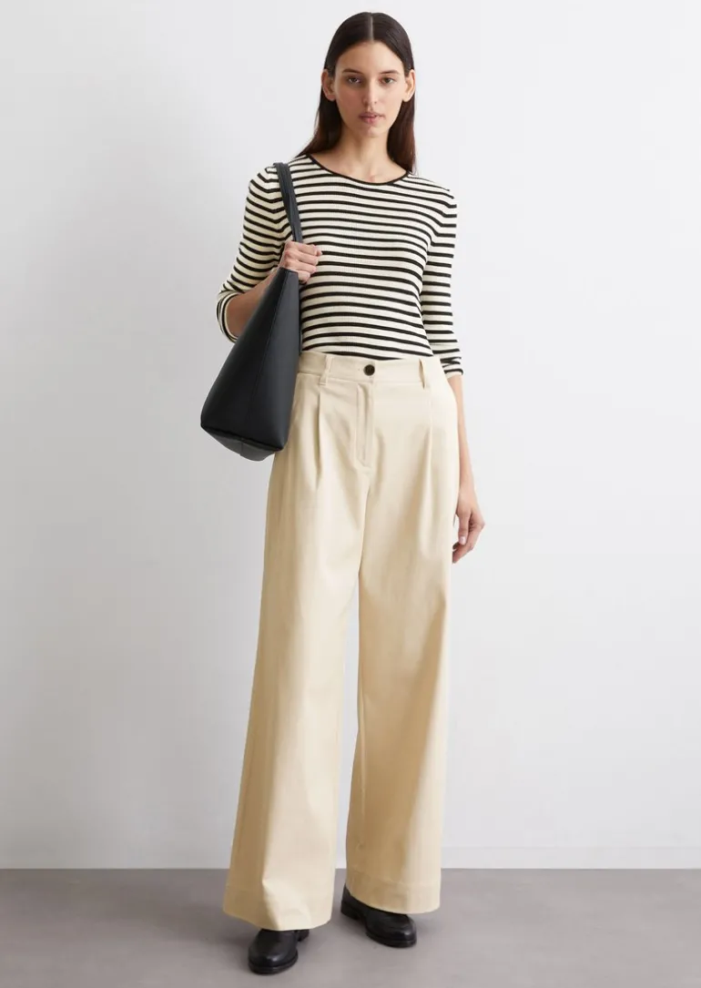 Straight Leg Pants mit Bundfalten aus Organic Cotton-Lyocell-Mix in beige