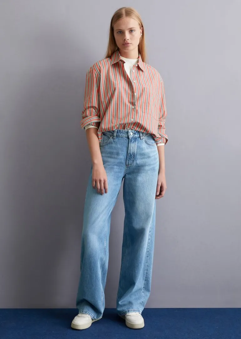 Streifenbluse regular aus Papertouch-Popeline in rot