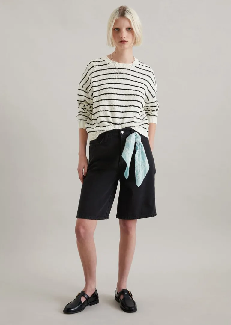 Streifenpullover regular aus Organic-Cotton-Slub-Garn in weiss