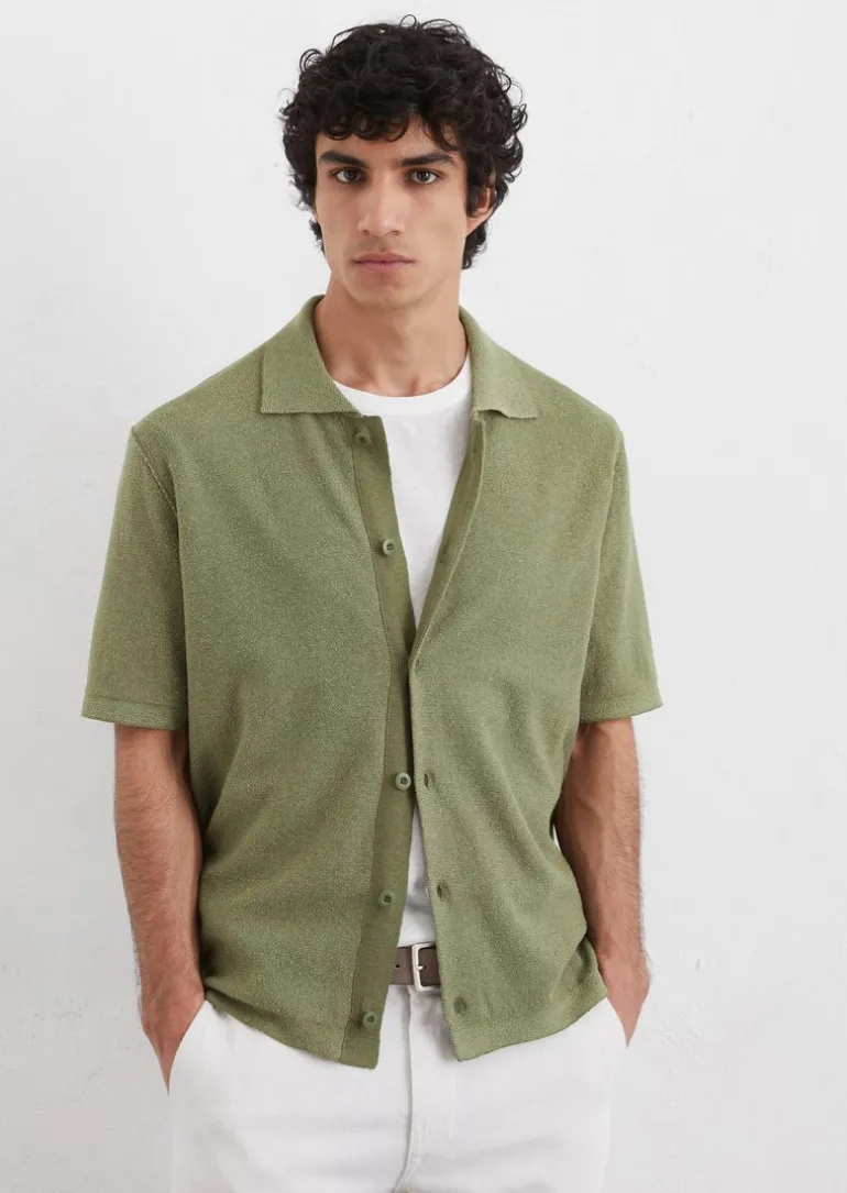 Strick-Bowlinghemd regular mit flauschiger Struktur in grün