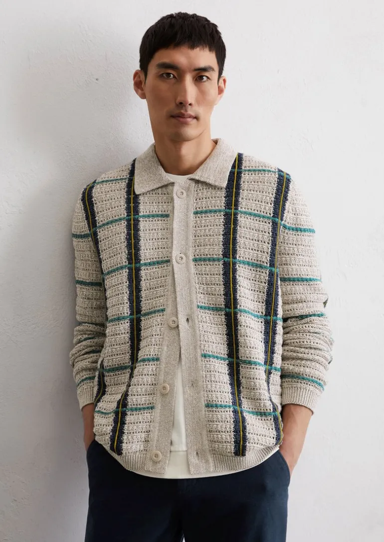 Strick-Overshirt regular aus Bio-Baumwoll-Leinen-Mix in beige