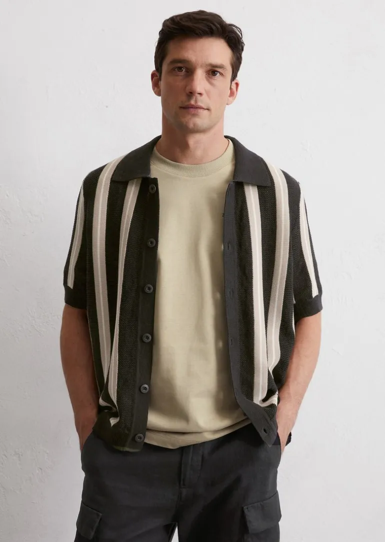 Strick-Poloshirt regular aus Bio-Baumwoll-Leinen-Mix in schwarz