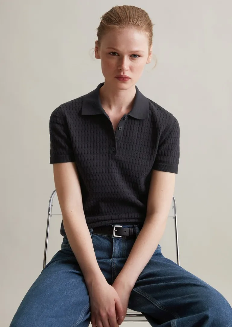 Strick-Poloshirt regular aus softem Baumwollgarn in blau