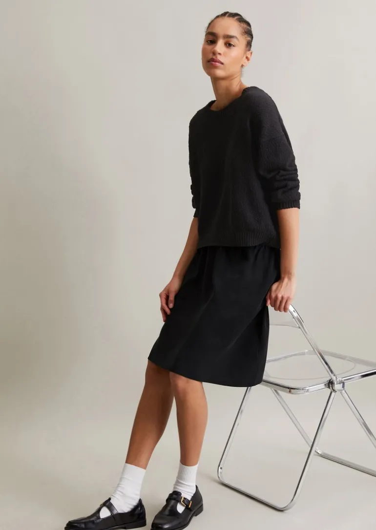 Strickpullover loose aus Cotton-Slub-Garn in schwarz