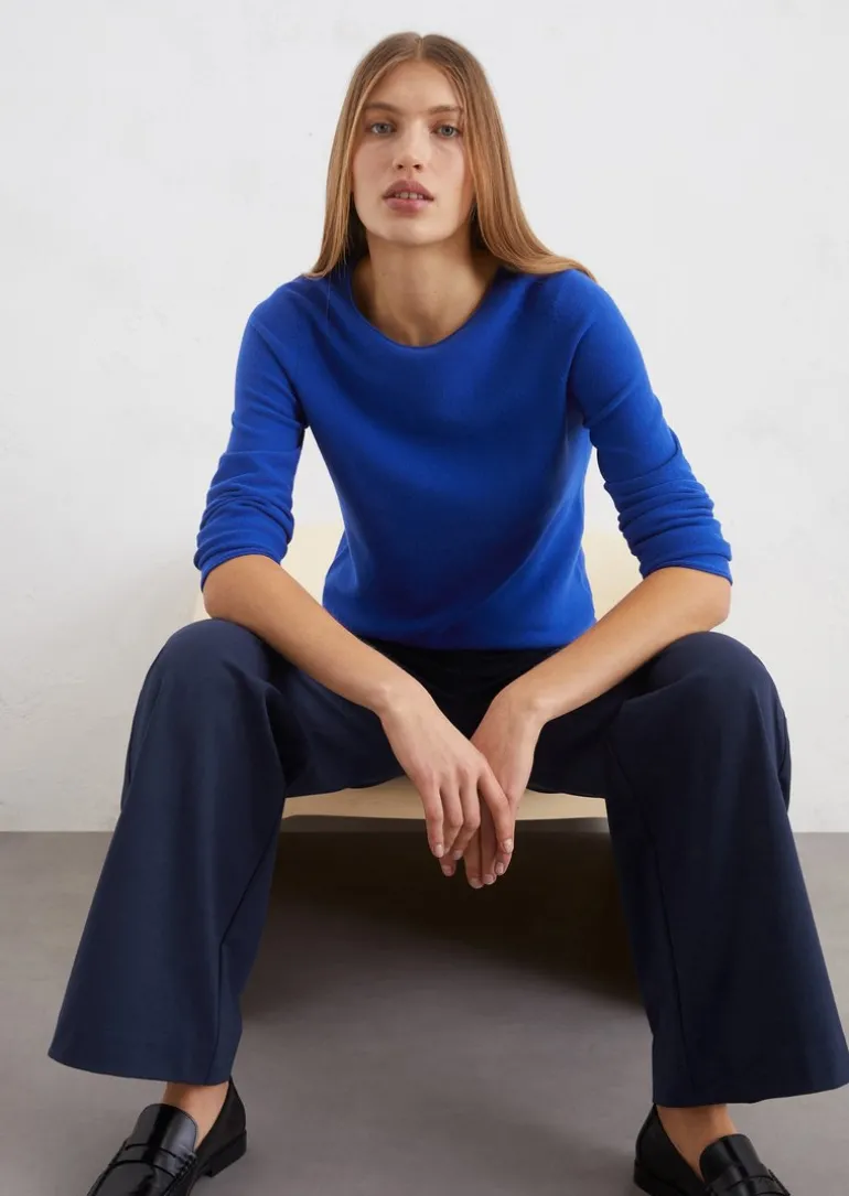 Strickpullover slim aus softem Organic Cotton in blau