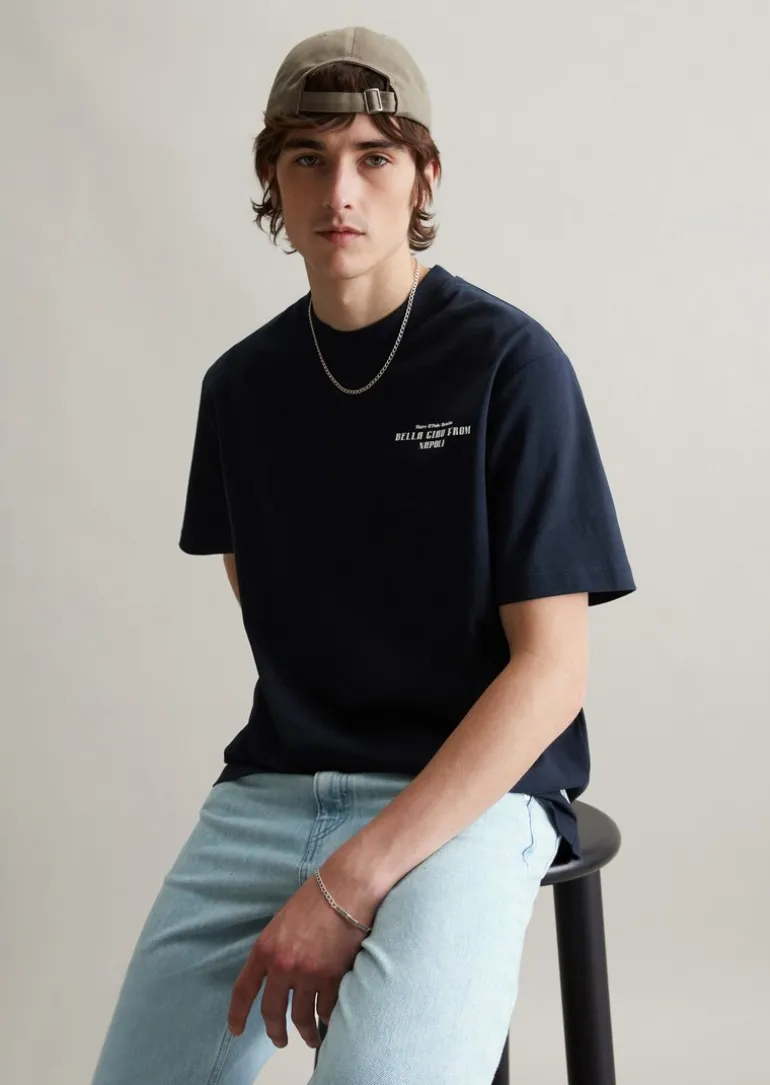T-Shirt oversized mit Print auf Vorder- und Rückseite in blau