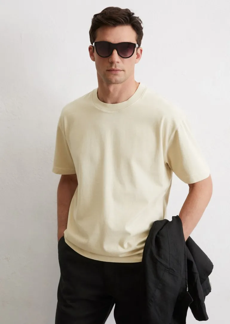 T-Shirt relaxed aus schwerem Bio-Baumwoll-Jersey in beige