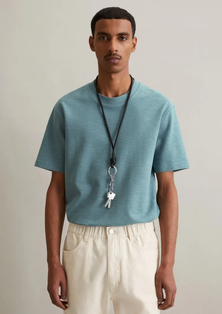 T-Shirt relaxed aus schwerem Slub-Jersey in blau