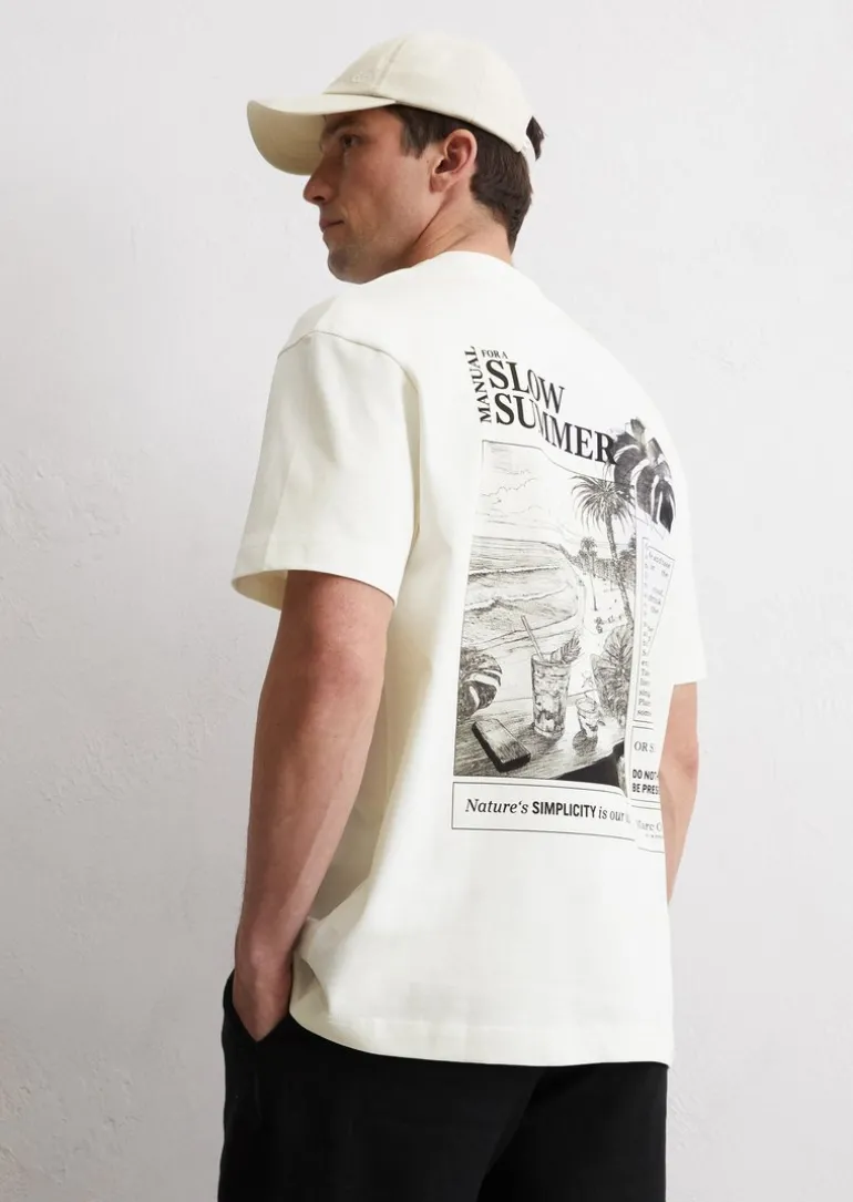 T-Shirt relaxed mit großem Rückenprint in weiss