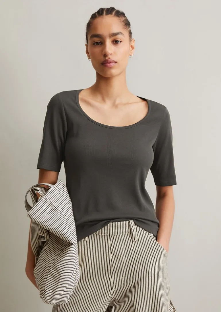 T-Shirt slim aus softem Ripp-Jersey in grau
