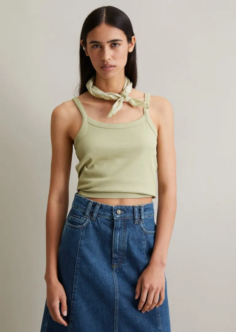 Trägertop cropped aus gerippter Bio-Baumwolle in grün
