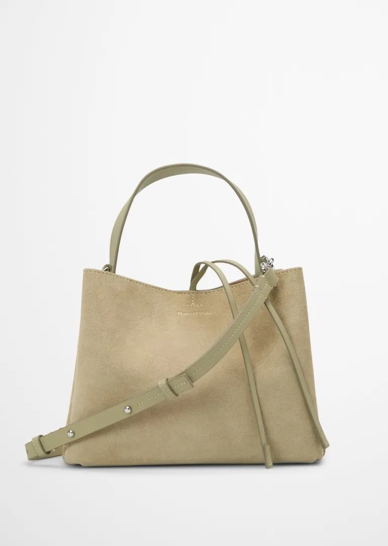 Umhängetasche small aus weichem Veloursleder in beige
