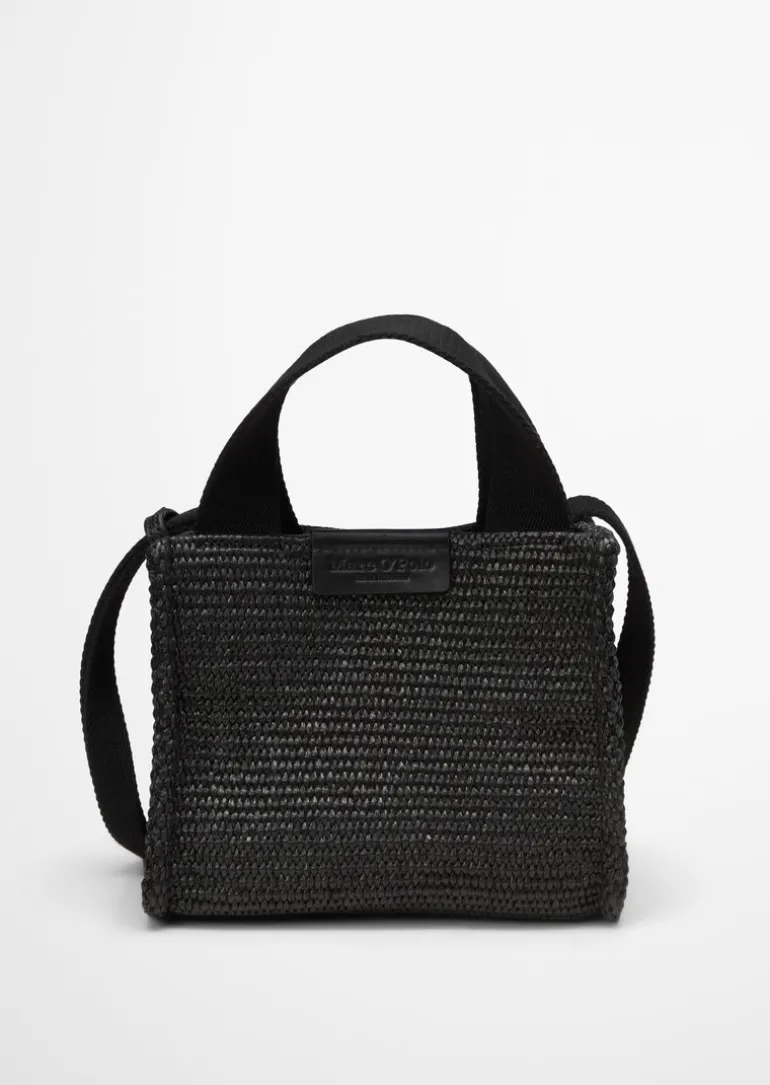 Umhängetasche small in Raffia-Bast-Optik in schwarz