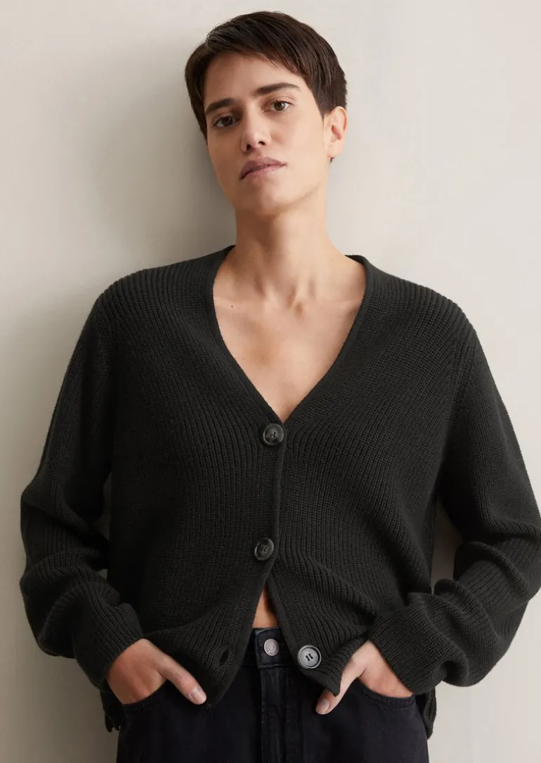 V-Neck-Cardigan relaxed aus Heavy-Weight-Organic-Cotton in schwarz