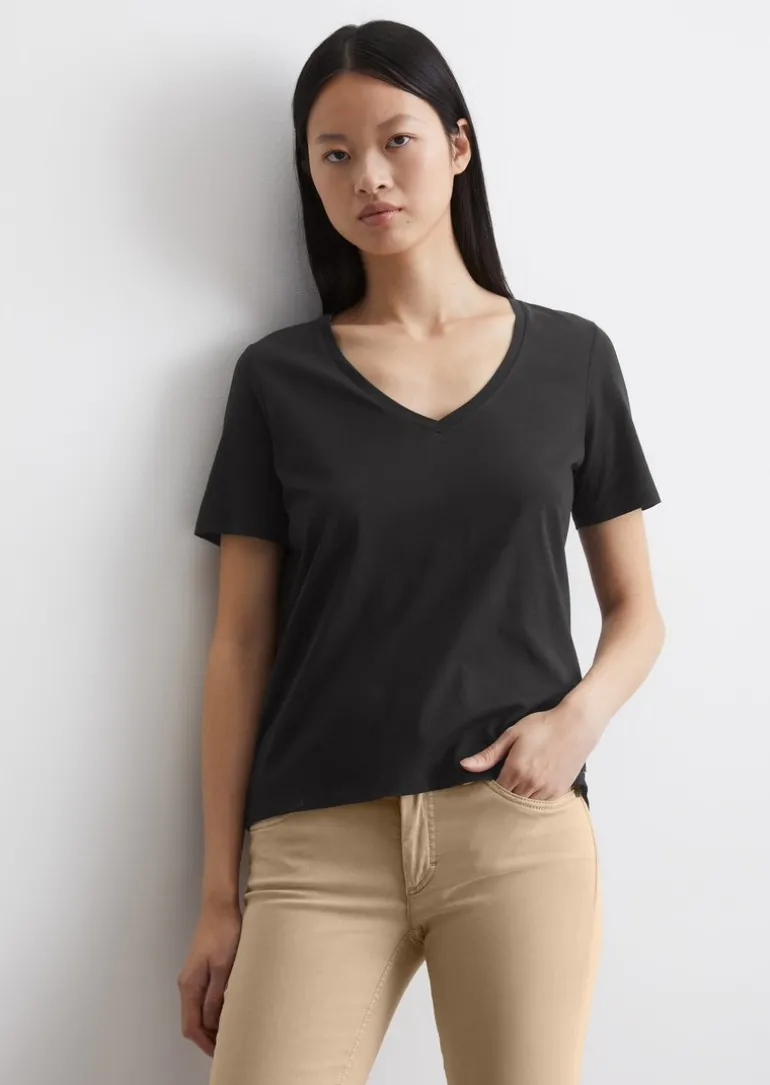 V-Neck-T-Shirt regular aus Organic Cotton in schwarz