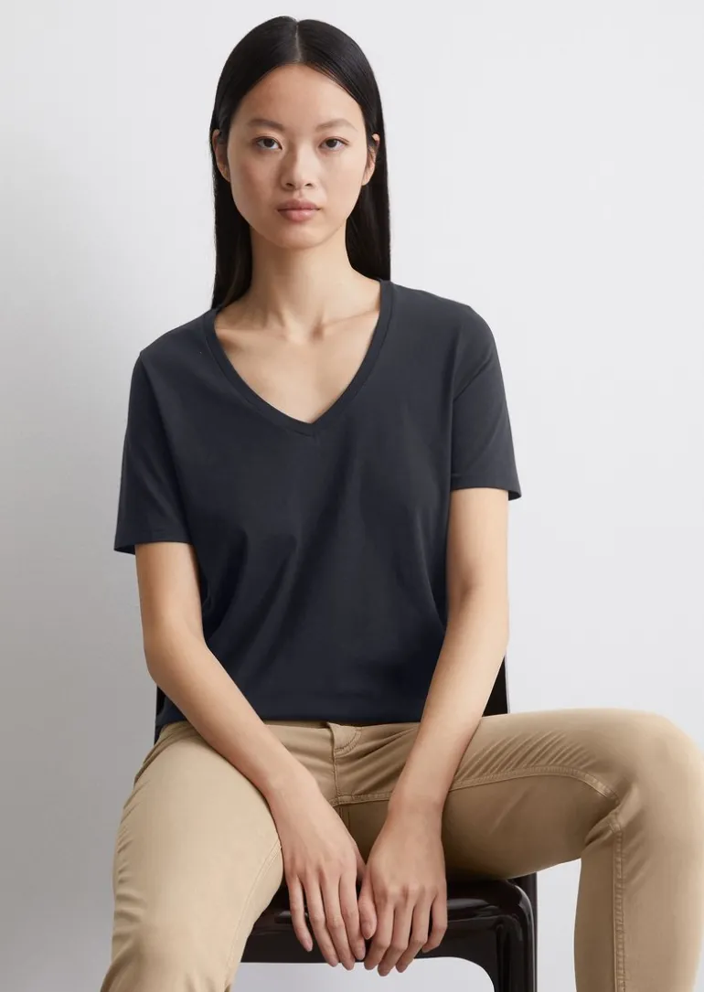 V-Neck-T-Shirt regular aus Organic Cotton in blau