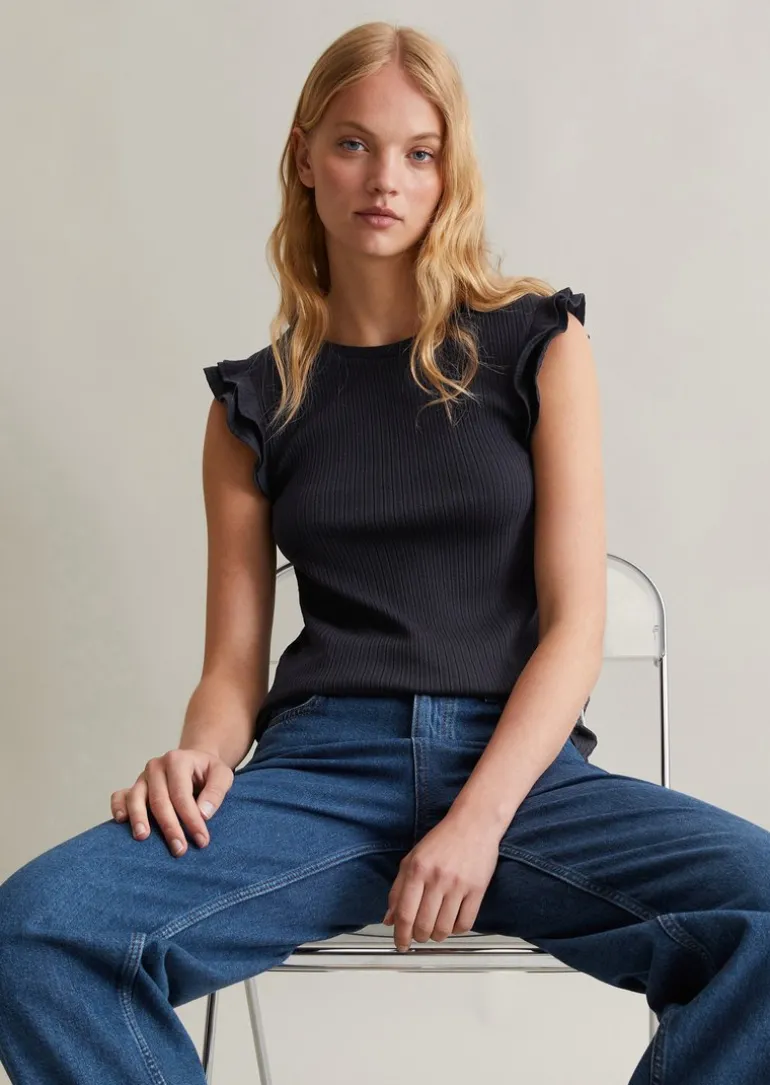Volant-T-Shirt regular aus modernem Ribbjersey in blau