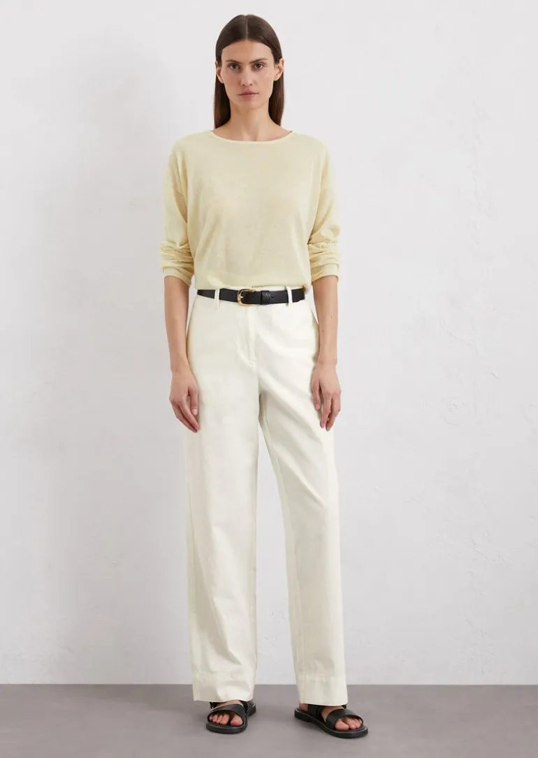Weite Hose Model Lande long aus Baumwolle-Leinen-Mix in weiss