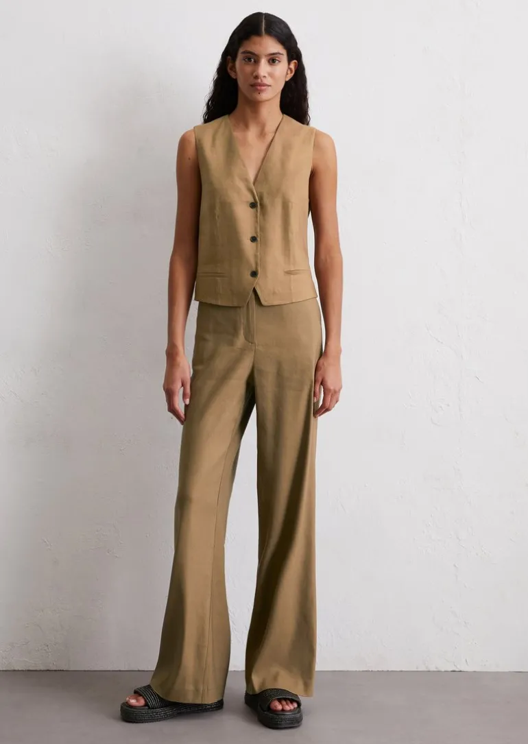 Weste regular aus Leinen-Viskose-Stretch in braun