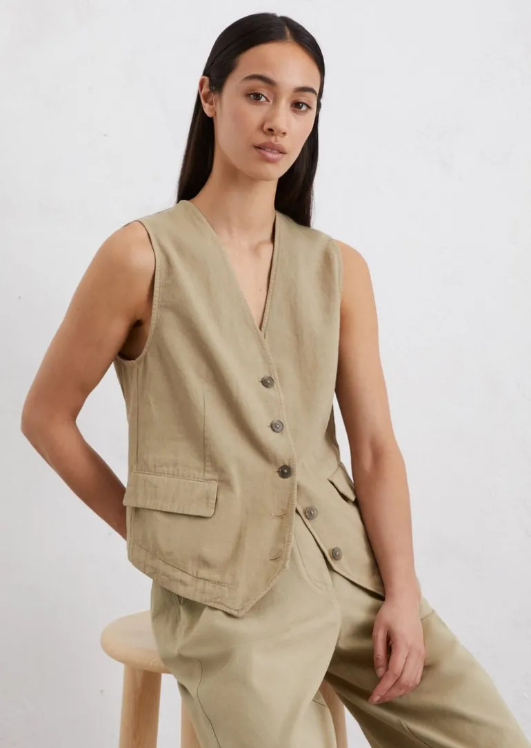 Weste regular aus Organic-Cotton-Leinen-Mix in beige
