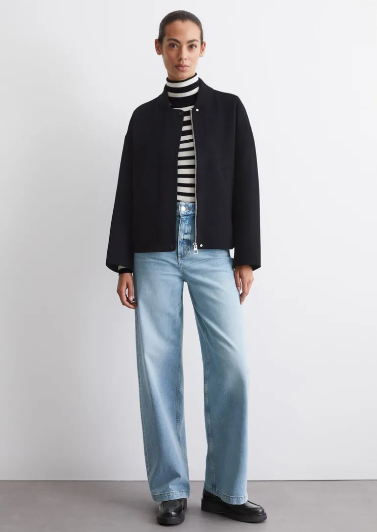 Wollblouson relaxed aus recyceltem Wolle-Mix in blau